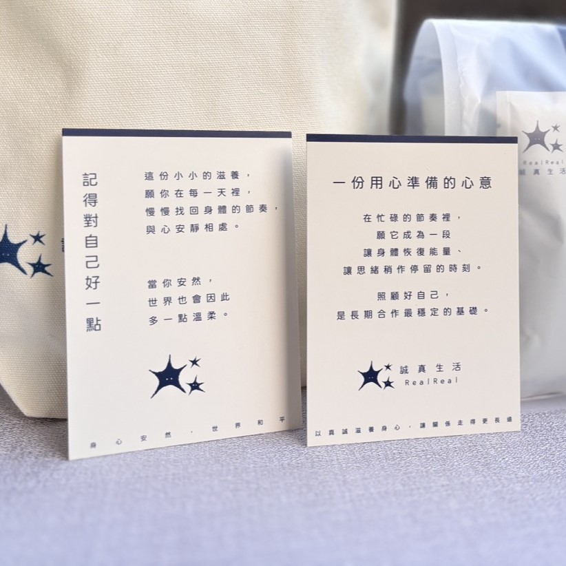 ✔ 1 組 營養任務包✔ 品牌星星帆布小袋(可重複使用)✔ 心意小卡 1 張(兩款擇一)